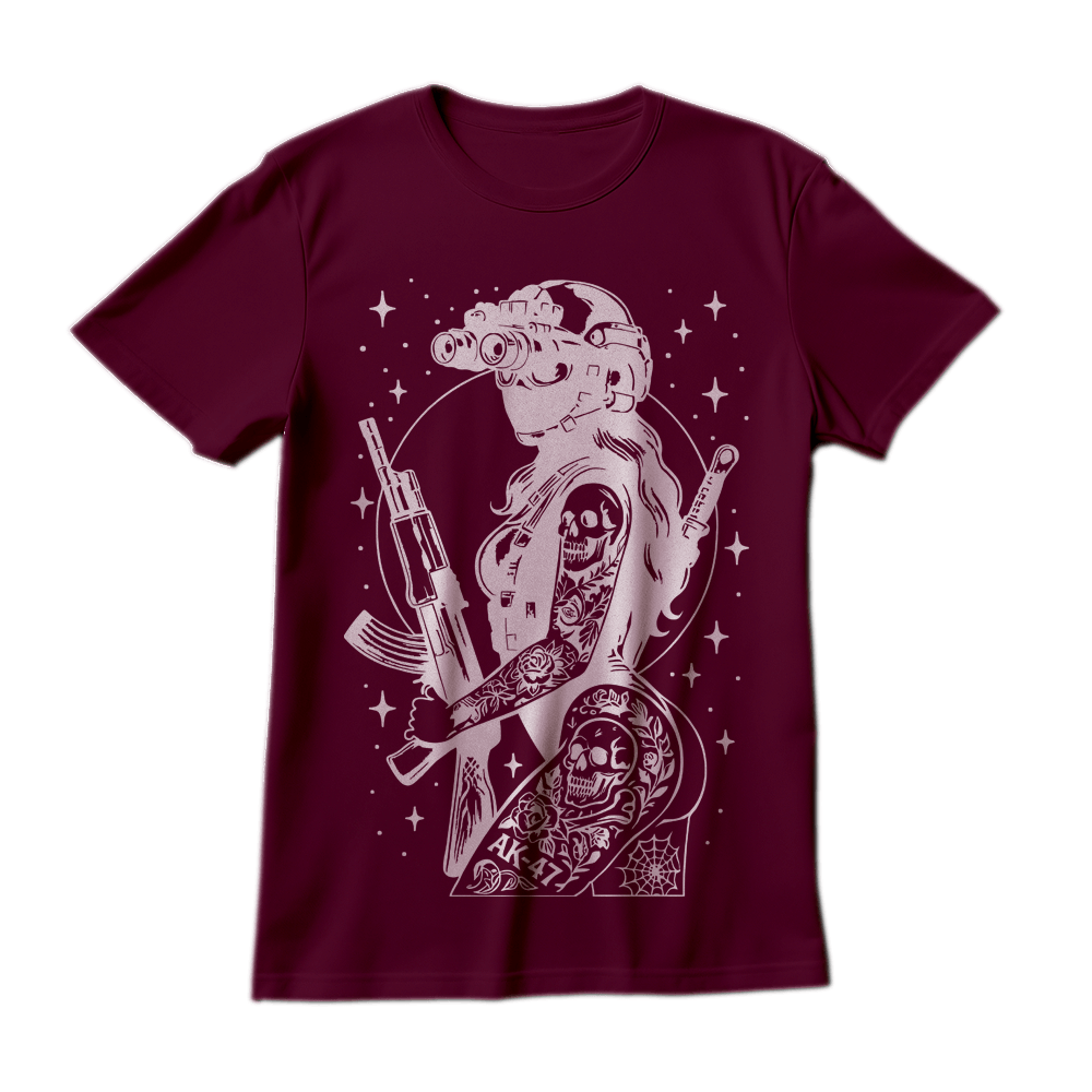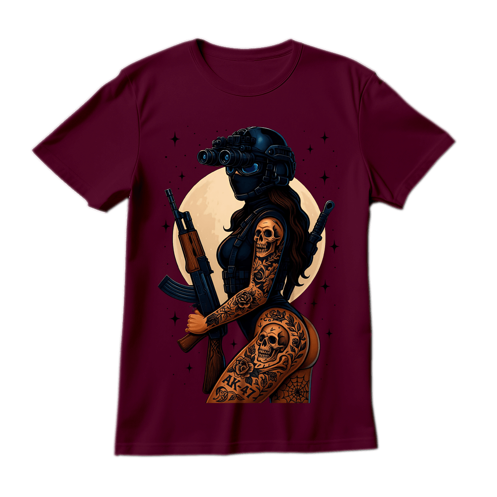 Футболка “Night Warrior” — це поєднання сили, стилю та характеру. Дизайн із зображенням жінки-воячки з татуюваннями, зброєю та нічним спорядженням символізує впевненість, сміливість і внутрішню свободу. Якісний принт не вигорає і зберігає насичені кольори навіть після численних прань.