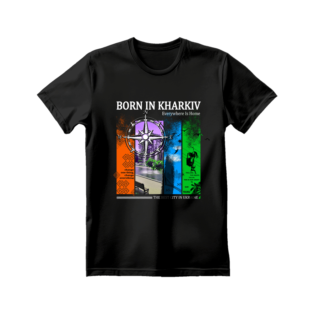 Ця футболка — більше, ніж просто одяг. Принт Born in Kharkiv підкреслить твою гордість за рідне місто та додасть стилю кожному образу. Ідеально підійде для повсякденного носіння, фотосесій чи як подарунок для справжніх харків'ян